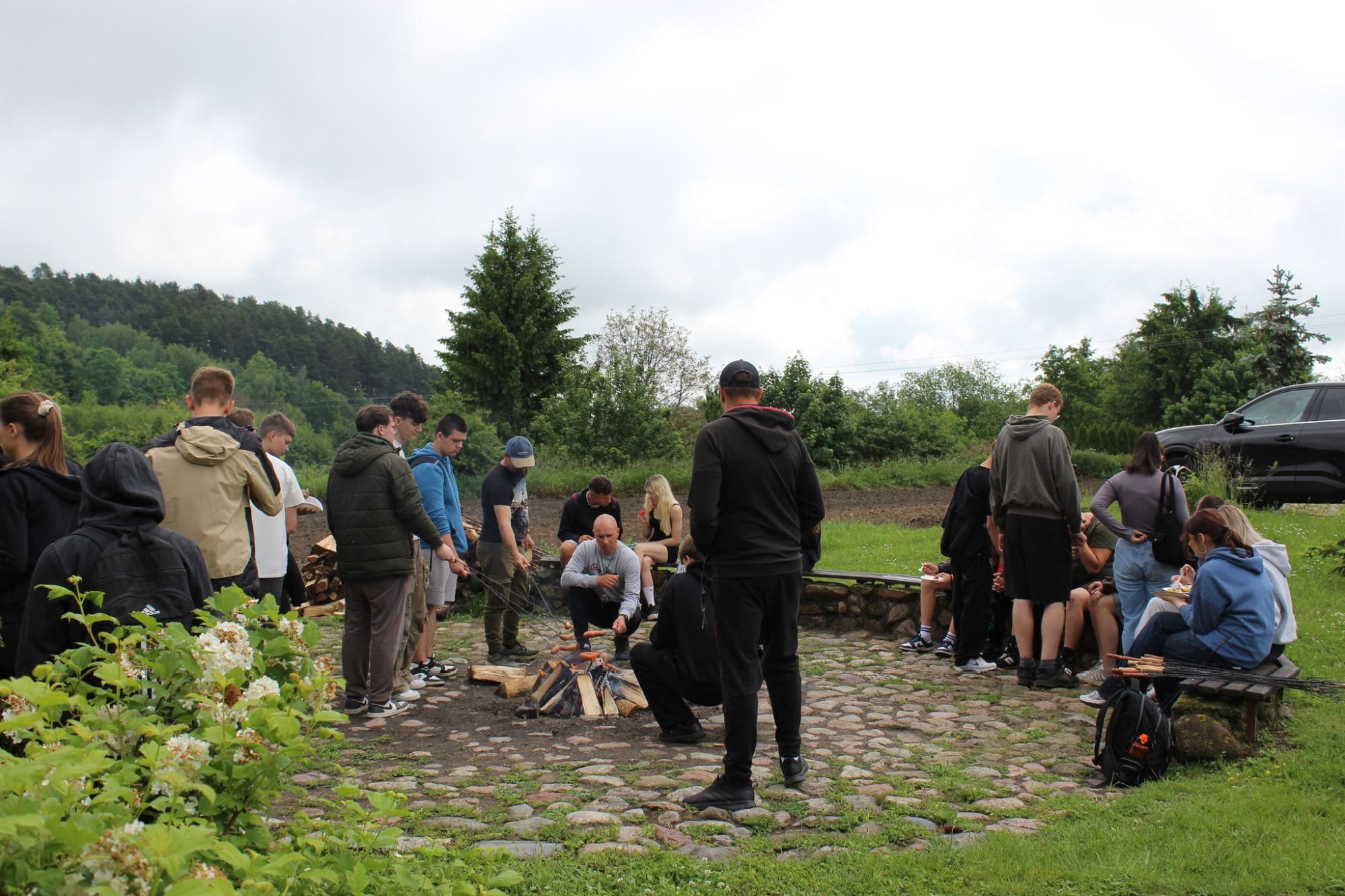 Było wspólne spotkanie przy ognisku z kiełbaskami i pieczonymi ziemniakami – nawet niezbyt sprzyjająca pogoda nie popsuła nam humorów.