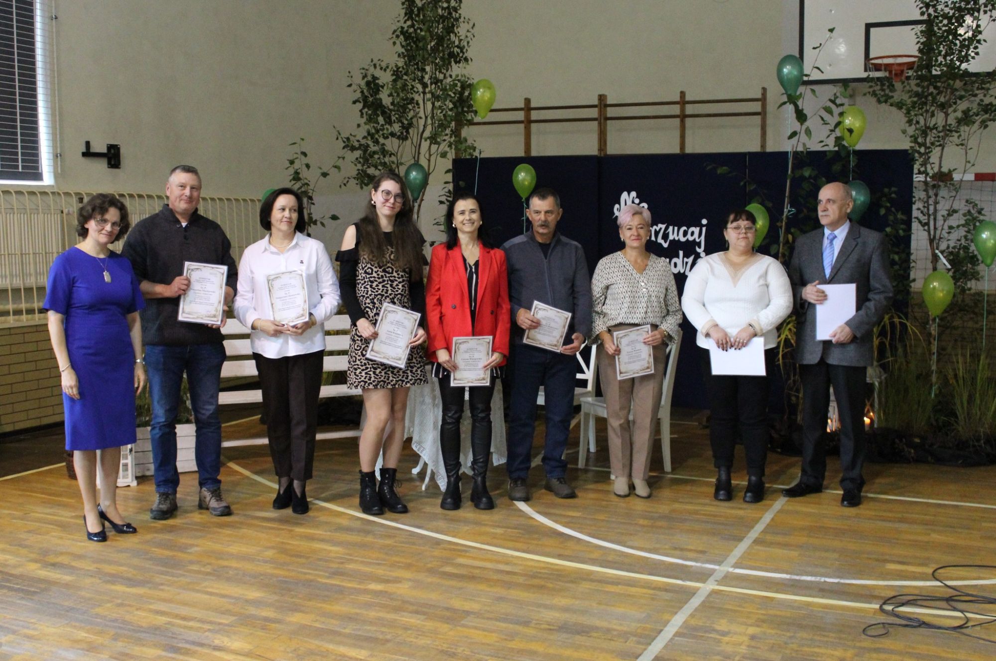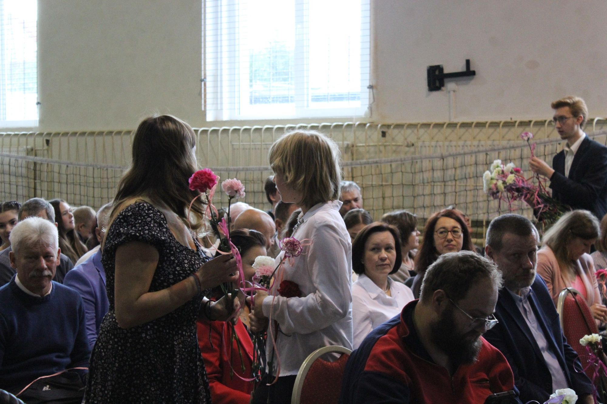 Zaprezentował się Zarząd Samorządu Uczniowskiego wraz z opiekunkami – paniami Martą Surowiec, Marleną Kotłowską i Natalią Matusiak-Tracz. Samorząd zadbał także o kwiaty dla wszystkich.