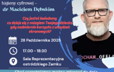 Burmistrz Miasta Ostróda wraz z Miejskim Ośrodkiem Pomocy Społecznej w Ostródzie, Dział Profilaktyki Uzależnień i Przeciwdziałania Przemocy Domowej zaprasza na bezpłatne spotkanie z wybitnym profilaktykiem w dziedzinie higieny używania urządzeń ekranowych – dr Maciejem Dębskim. Dr Maciej Dębski to założyciel i prezes Fundacji DBAM O MÓJ Z@SIĘG. Socjolog problemów społecznych, wykładowca akademicki, edukator społeczny, ekspert w realizacji badań naukowych, […]