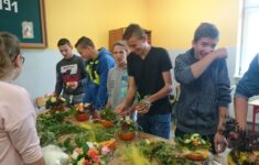 Warsztaty florystyczne prowadzone pod kierunkiem naszych pań profesor od ogrodnictwa cieszą się niesłabnącym zainteresowaniem. Dlatego 7.10. odbyły się one w Stębarku. Gimnazjaliści, pod czujnym okiem pań Moniki Mikułan, Dominiki Ulaniuk i Katarzyny Arcichowskiej-Pisarskiej, wykonywali piękne jesienne kompozycje, co ciekawe, jako naczynie wykorzystano dynię. Do kompozycji wykorzystano naturalne materiały zebrane w przyszkolnym ogrodzie.